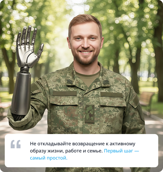 С 2018 года мы помогли вернуться к активной жизни сотням людей. Наши специалисты — эксперты в работе со сложными ампутационными дефектами и тяжёлыми ранениями, полученными в ходе боевых действий.